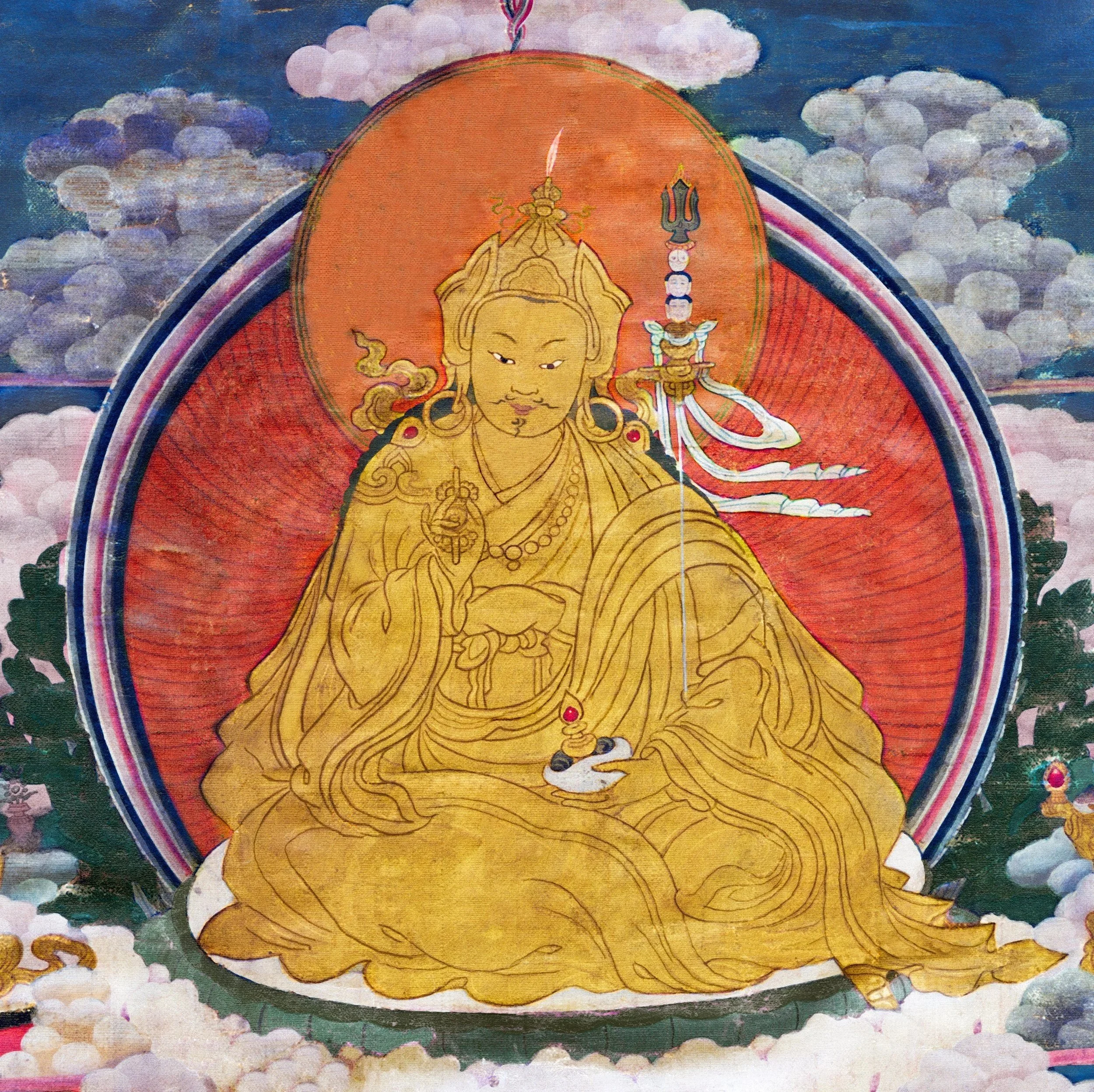 This Guru Rinpoche thangka image is available for download from the website of Tulku Thondup Rinpoche at tulkuthondup.com.